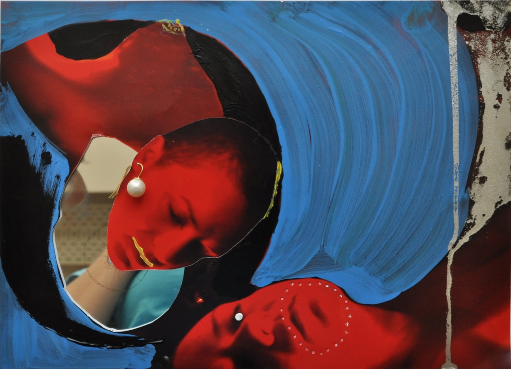 13. Geburtsvorgang, Collage mit Spiegel, A4, 2013
